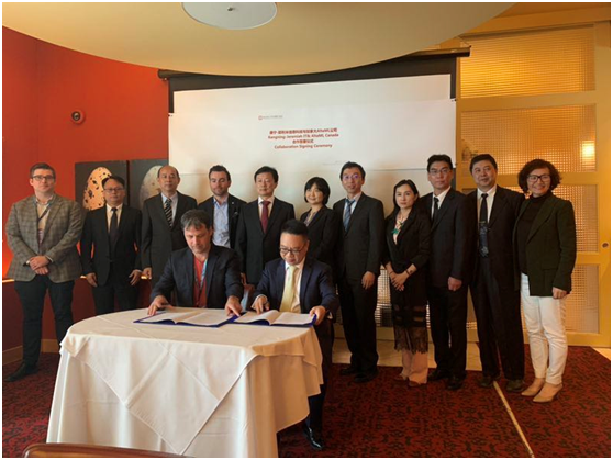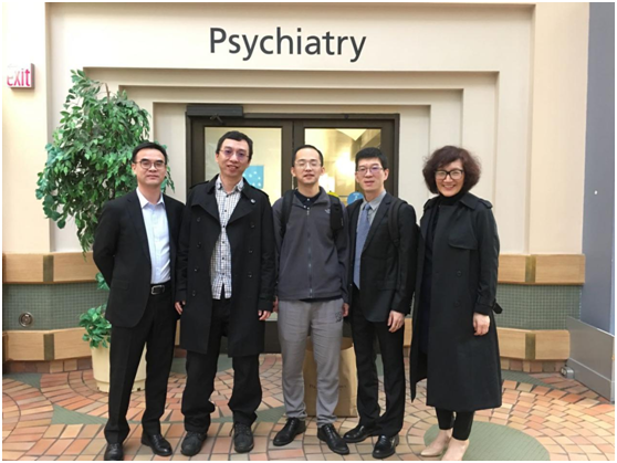 温州医科大学精神医学学院党委书记许冬武、耶利米信息科技有限公司董事长徐谊、总经理项健、温州康宁医院国合部主任王保凤与艾伯塔大学精神医学教授曹礴于艾伯塔大学